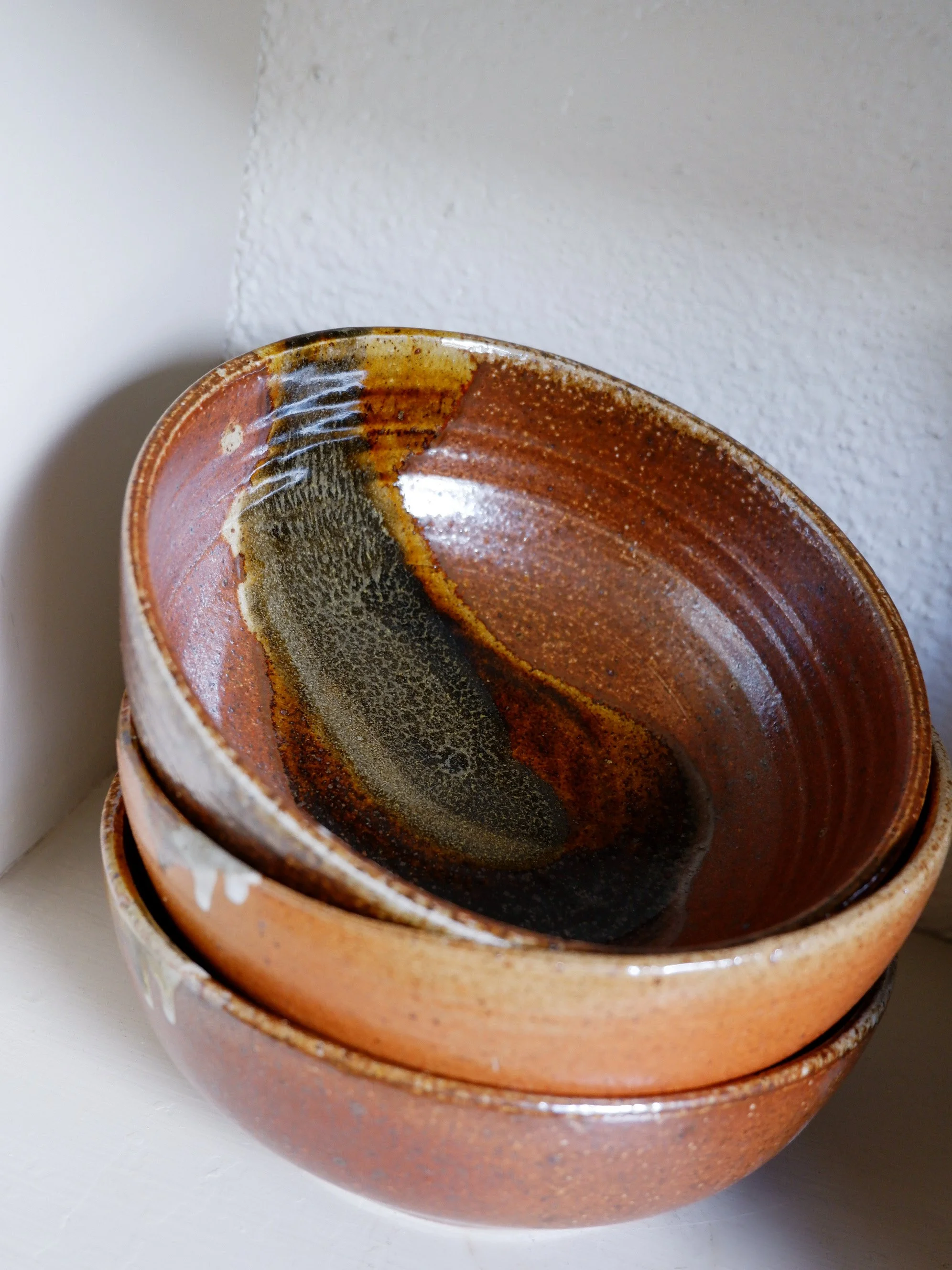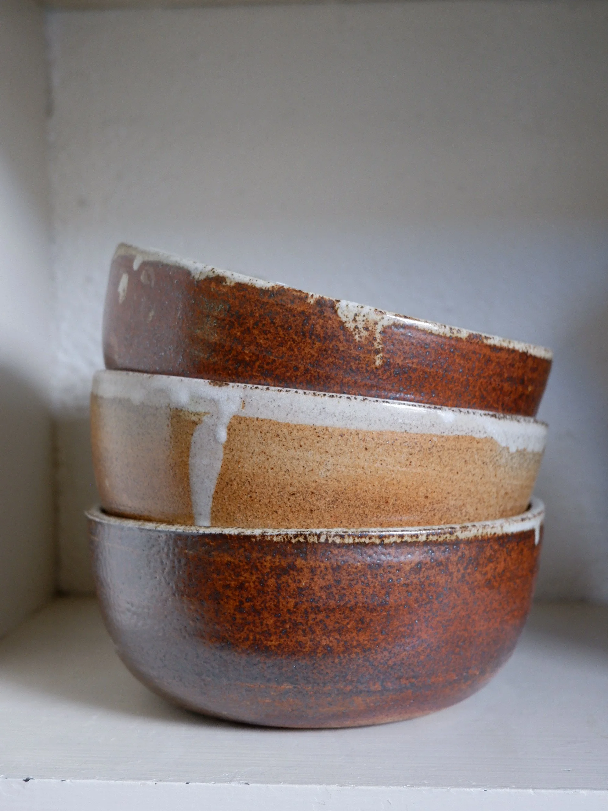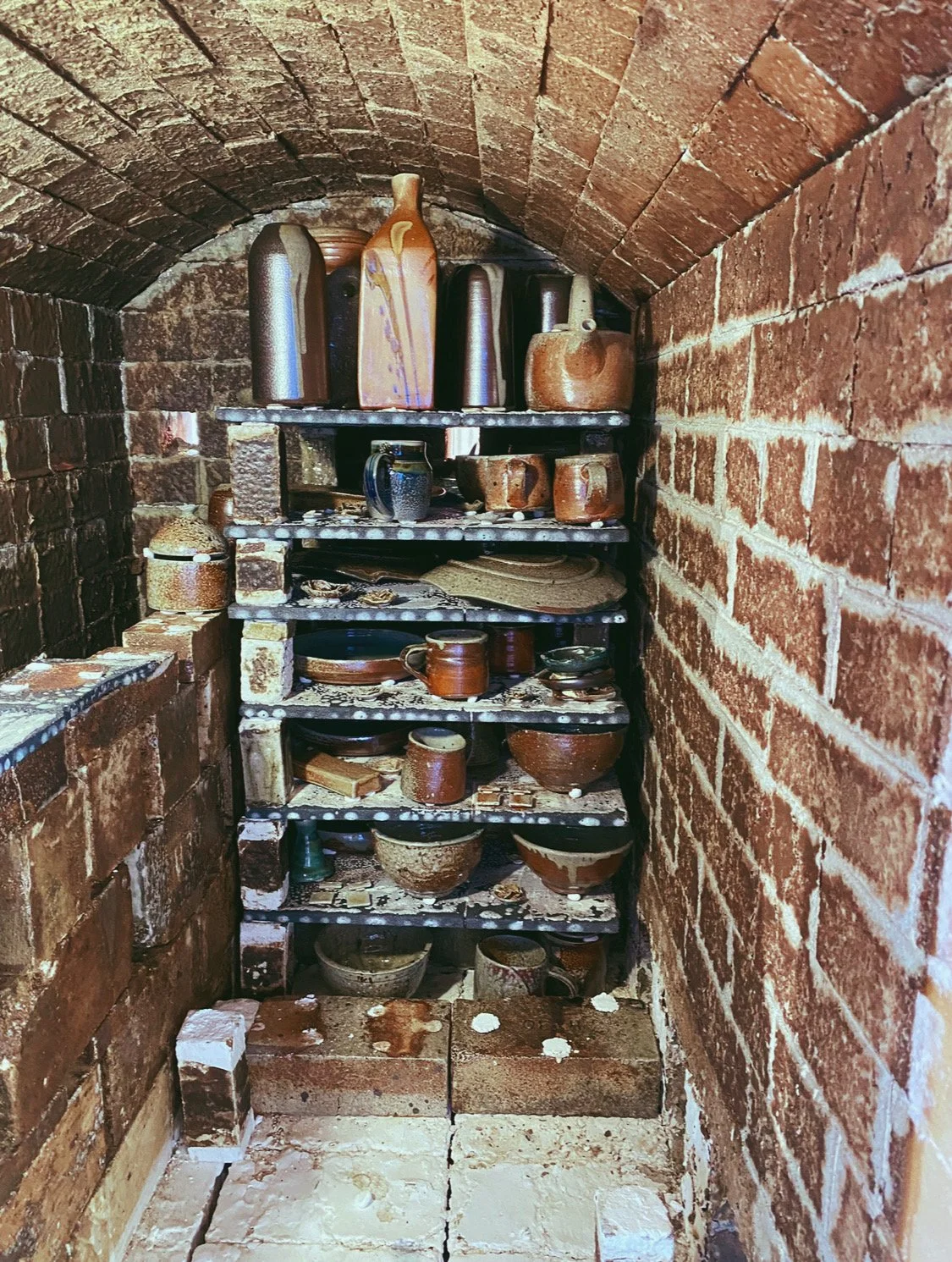 Flame and ash hurtle around the inside of the kiln, kissing the pots and leaving a truly unique path. All firings bring slightly different results and each piece will be distinctive in its own way.