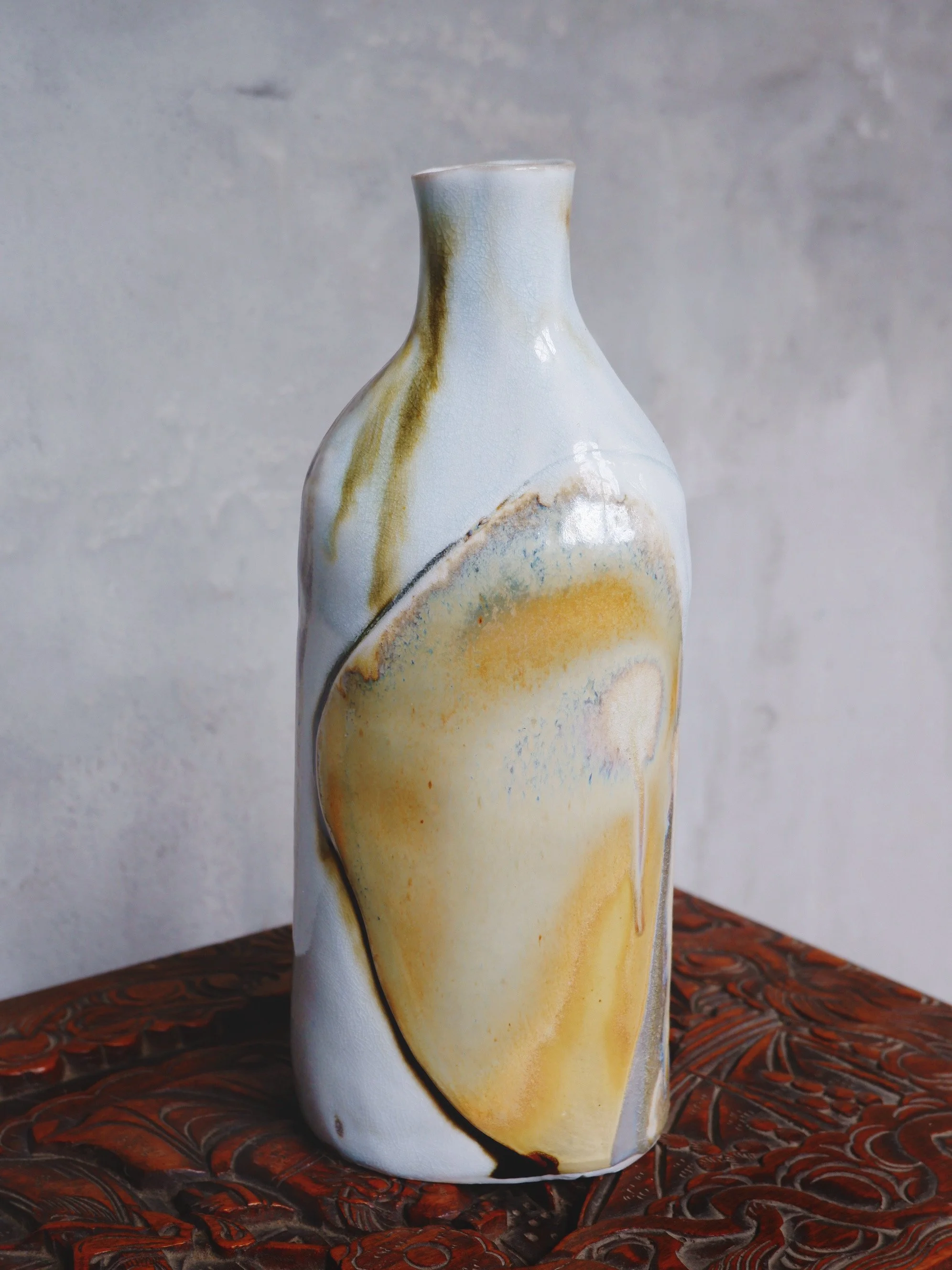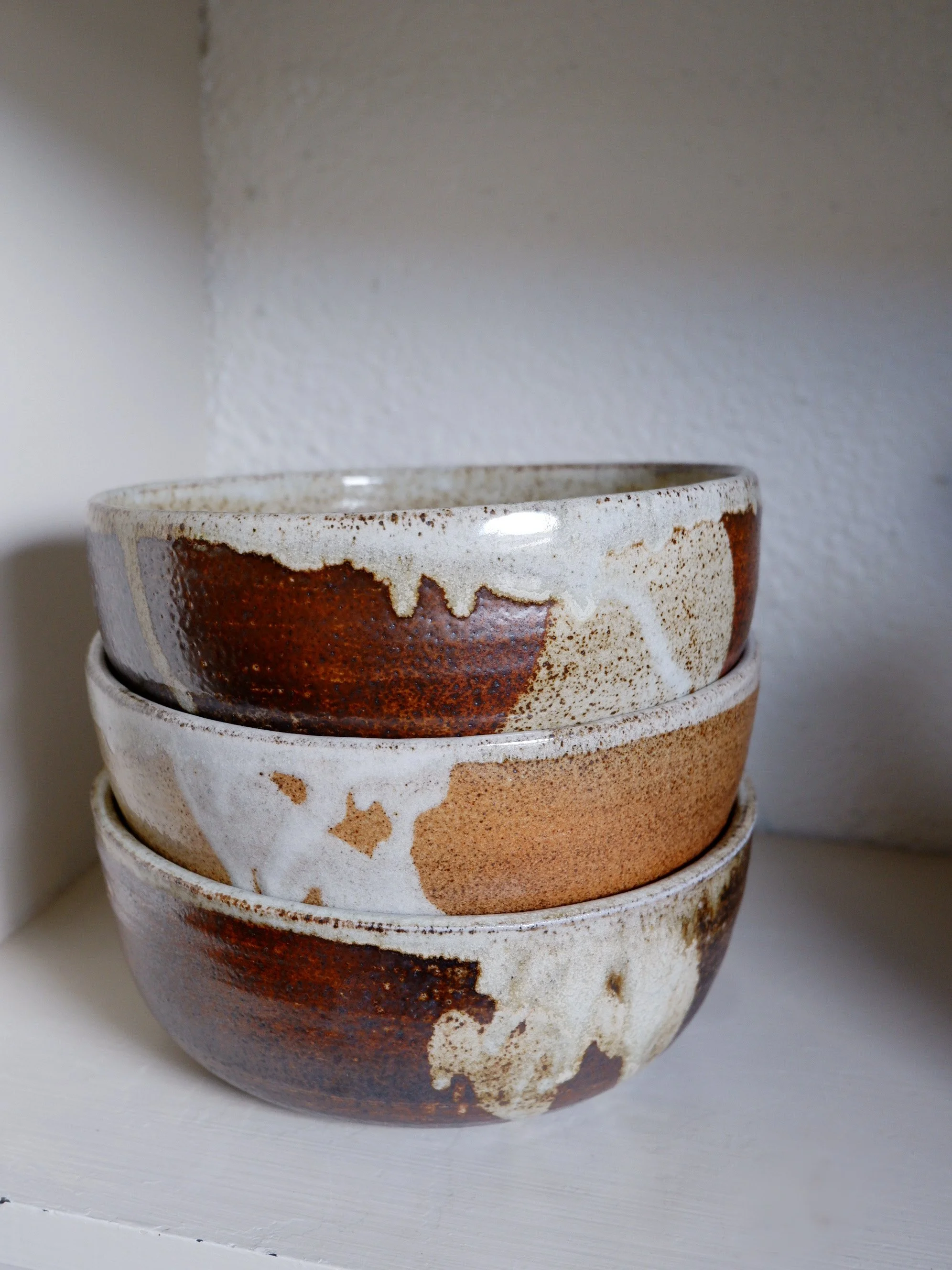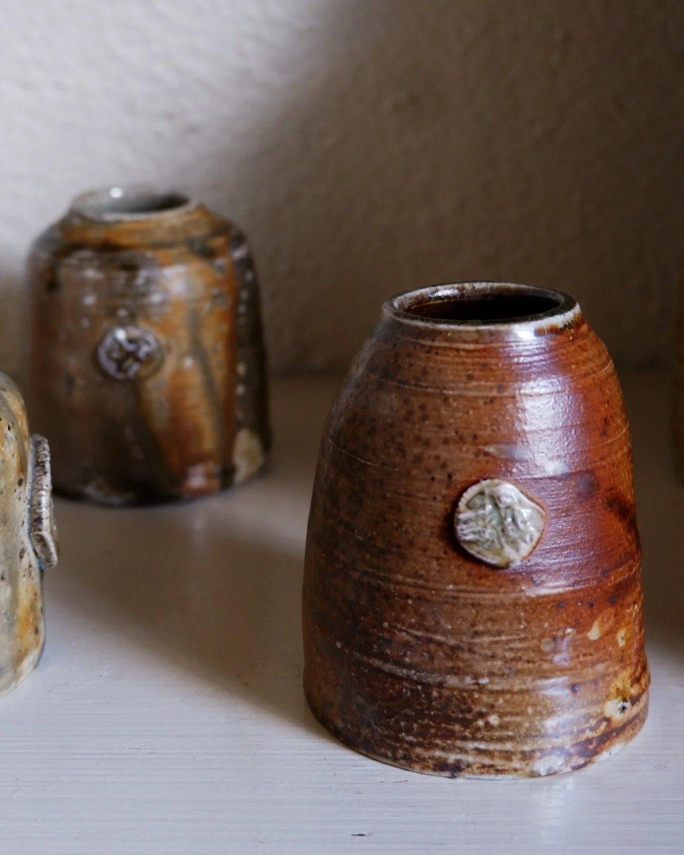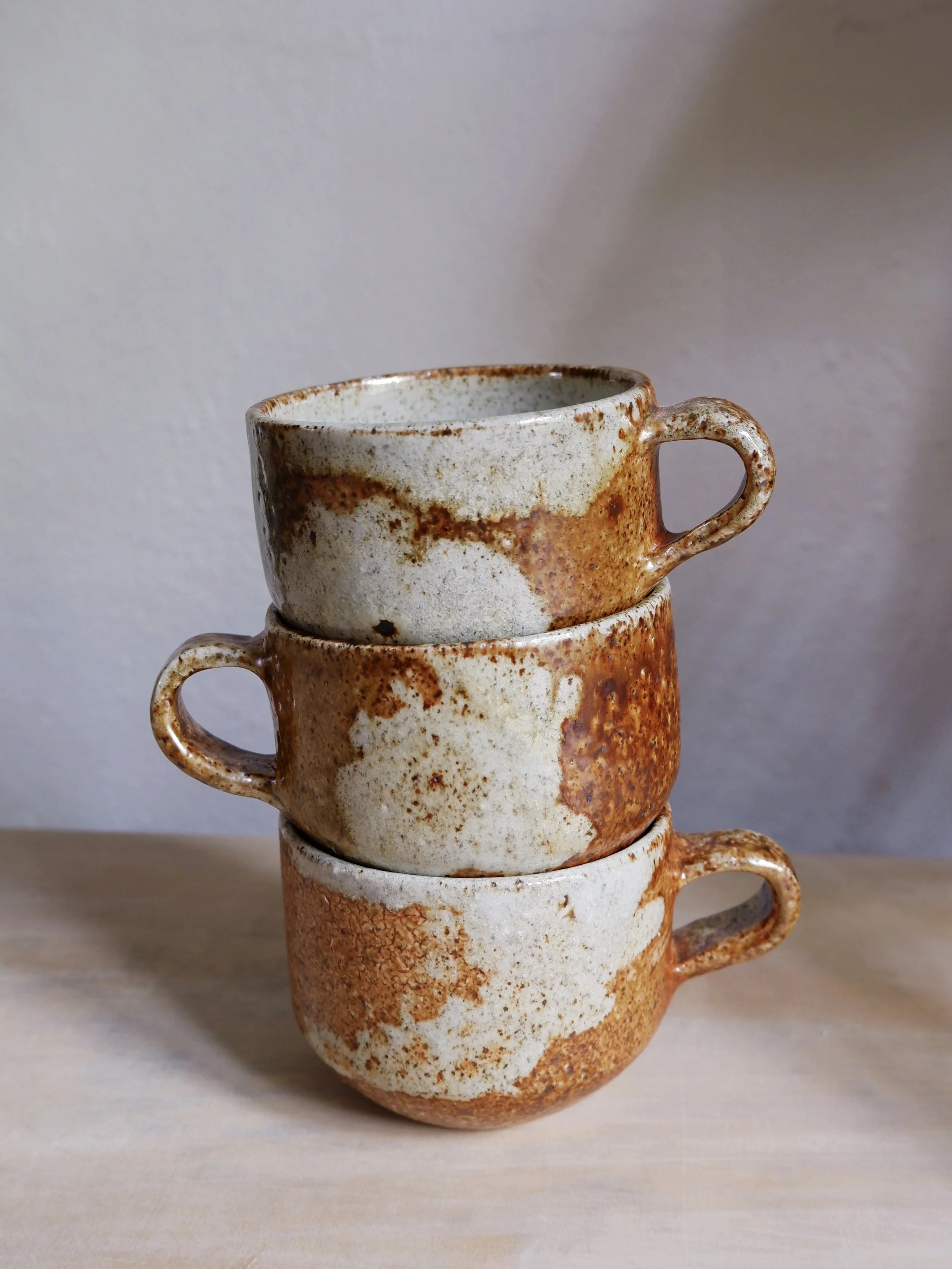 Flame and ash hurtle around the inside of the kiln, kissing the pots and leaving a truly unique path. All firings bring slightly different results and each piece will be distinctive in its own way.